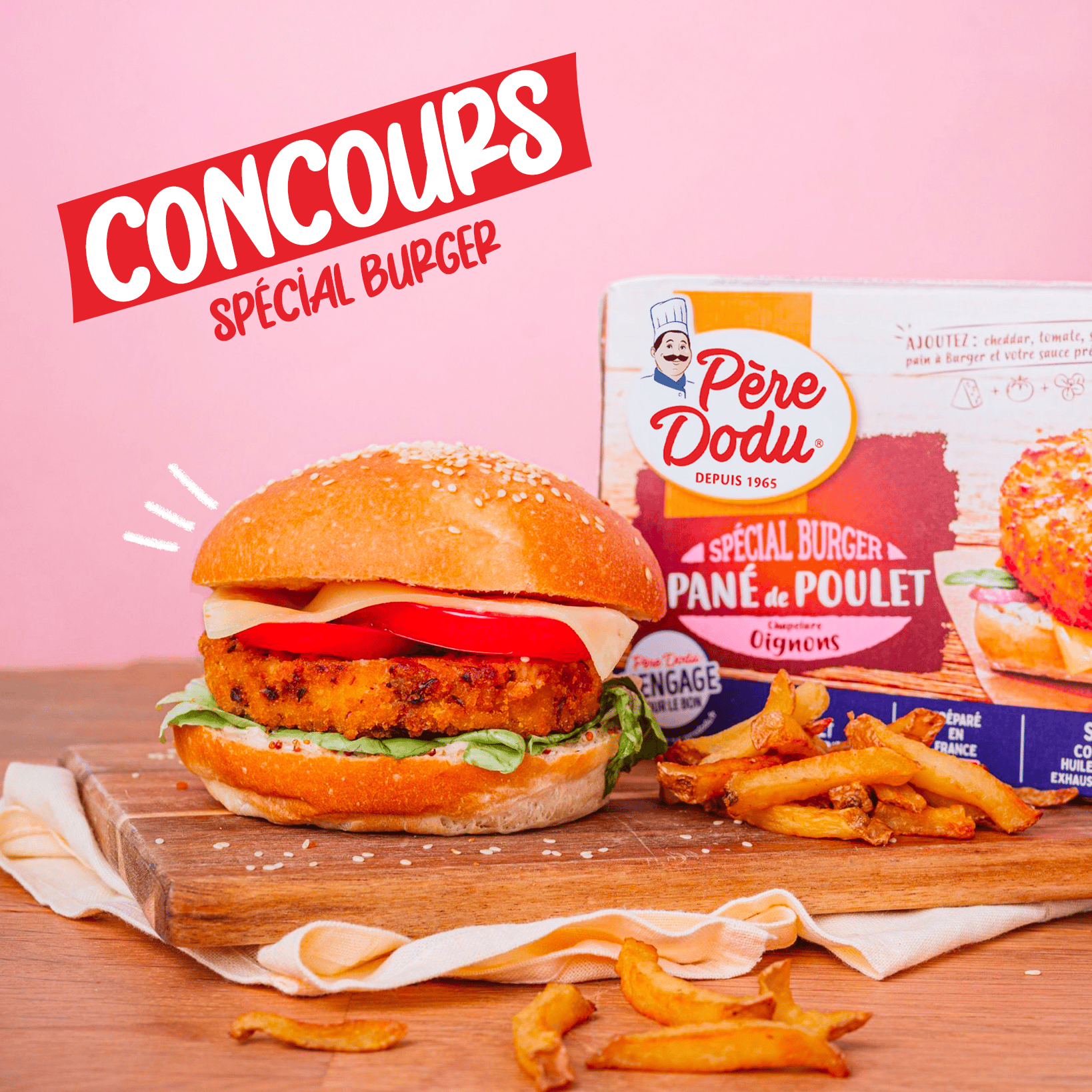 Pour participer, c’est très facile ! Choisissez l’une de nos deux recettes de panés de poulet spécial burger et réalisez votre burger signature. Vous avez ensuite jusqu’au 13 novembre pour poster la photo de votre recette sur Instagram, accompagnée de l’hashtag #MonBurgerPèreDodu.