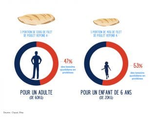 1 portion de filet de poulet nous apporte environ la moitié de nos besoins en protéines par jour !