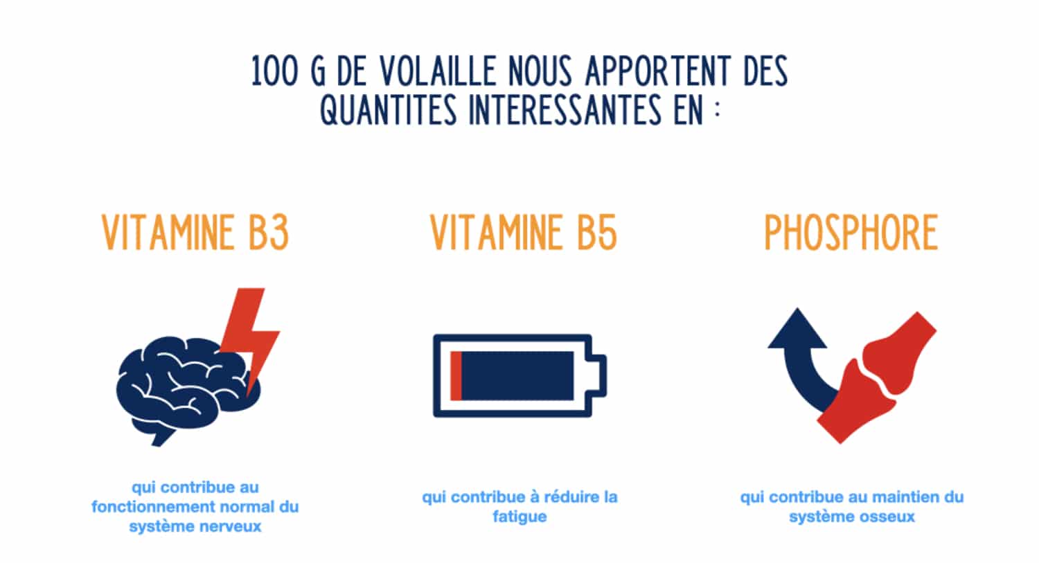 Et ce n’est pas tout ! Les viandes de volaille nous apportent aussi des vitamines et minéraux