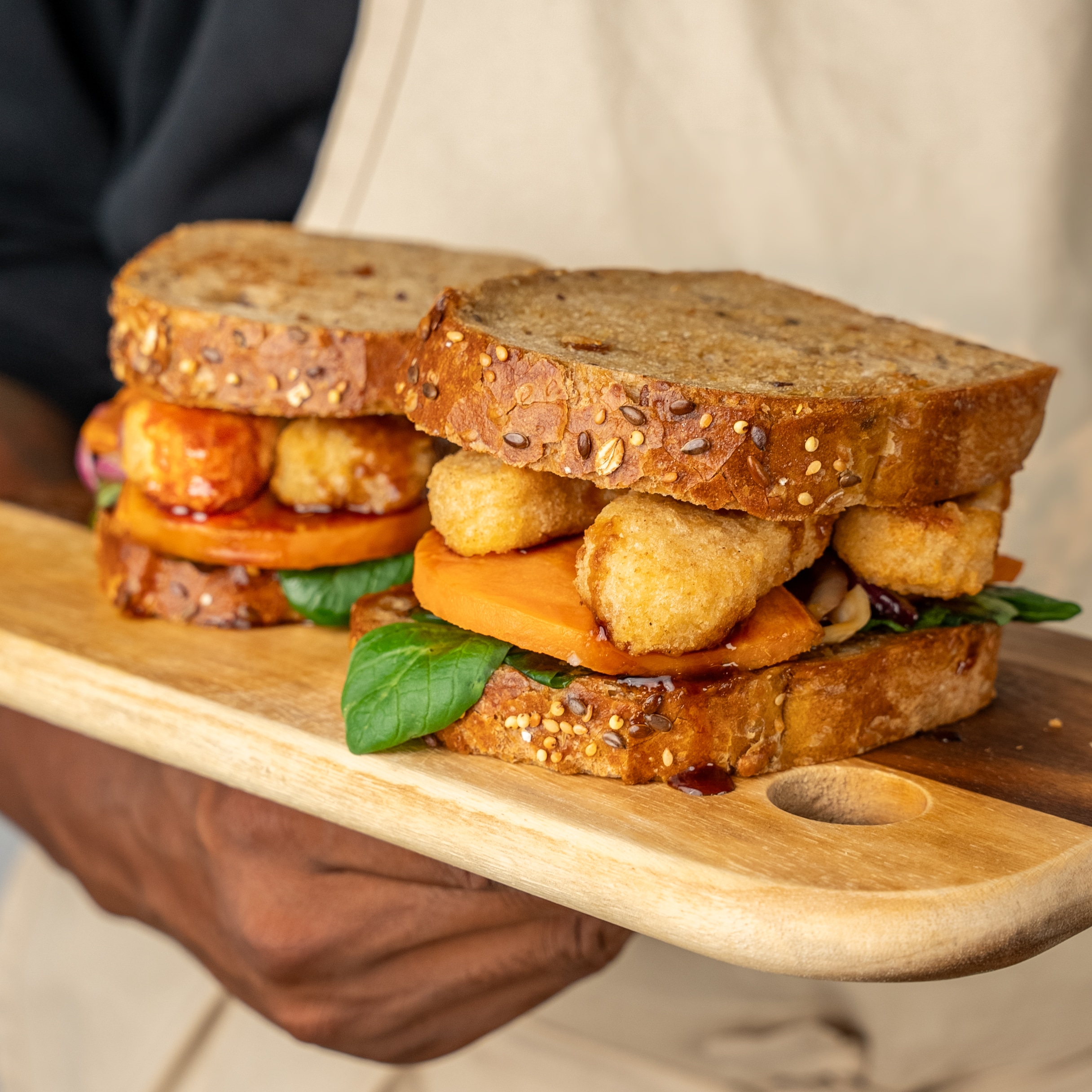 Sandwich d'automne à la patate douce et aux nuggets de fromage