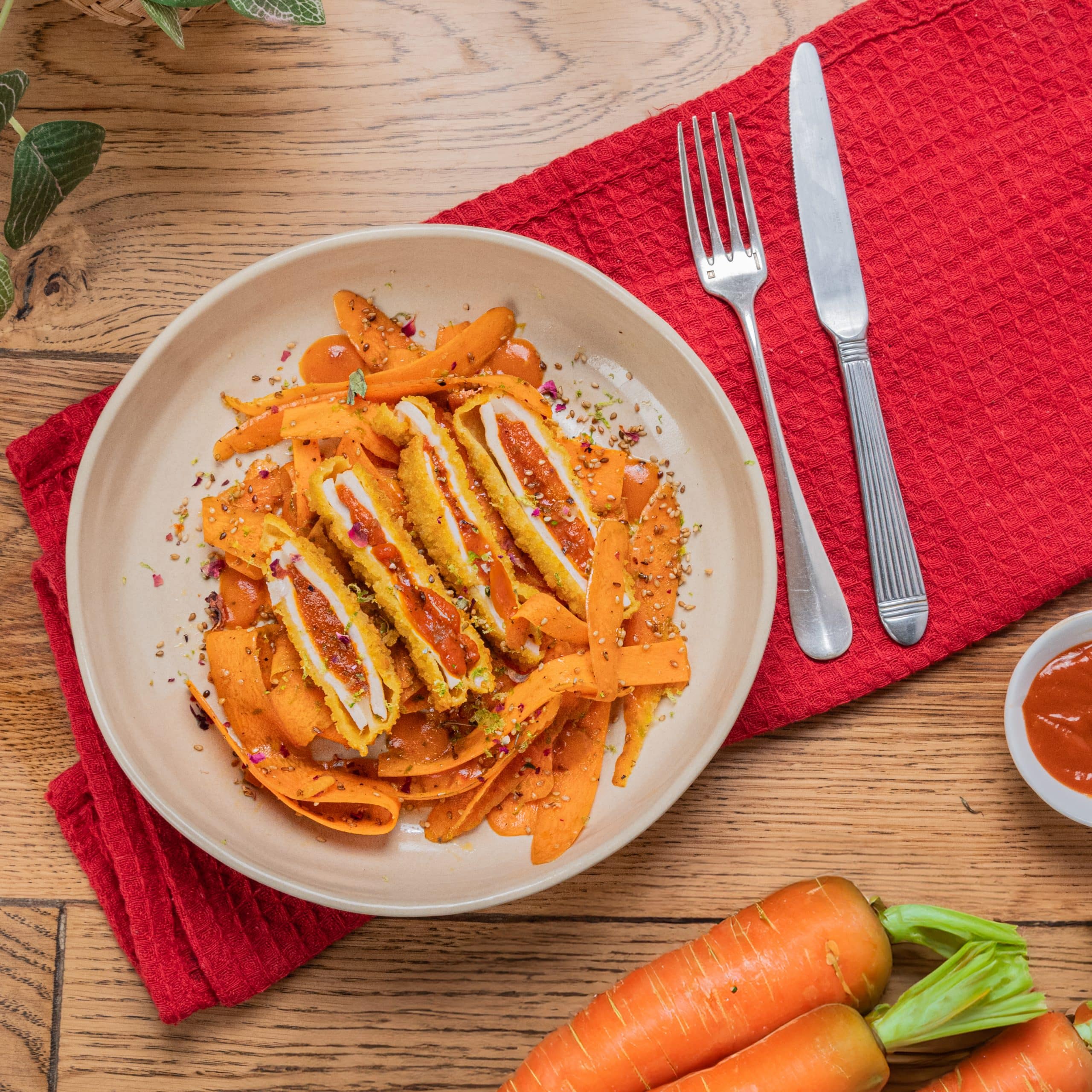 Tagliatelles de carottes à l'escalope bolognaise