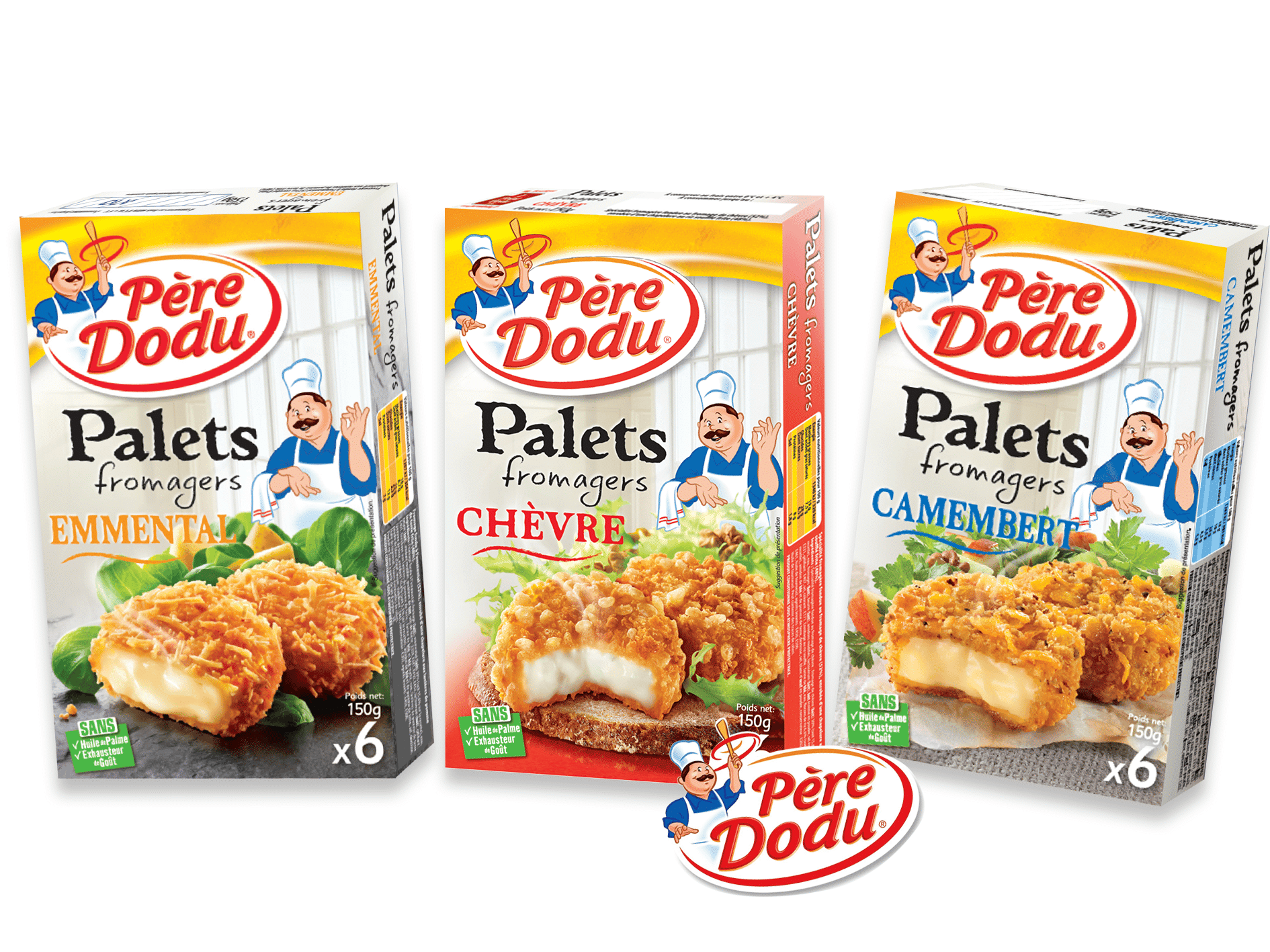 Père Dodu se lance dans les 1ers panés sans viande, 100% fromage : les Palets Fromagers (Emmental, Chèvre et Comté).